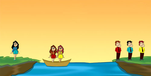Ba cặp vợ chồng đi chơi picnic với nhau. Họ phải vượt qua một con sông trong khi chỉ có một chiếc thuyền xếp chở được 2 người. Hãy giúp họ qua sông nhưng chú ý: các ông chồng sẽ không cho phép vợ mình ở với người đàn ông khác mà không có mặt mình ở đó.