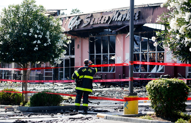 Chợ Senter Market nằm trong khu mua bán sầm uất của người Việt bị thiệt hại hoàn toàn sau vụ cháy lớn vào sáng sớm ngày 4/10/2015 – Photo Courtesy: SJ Mercury News