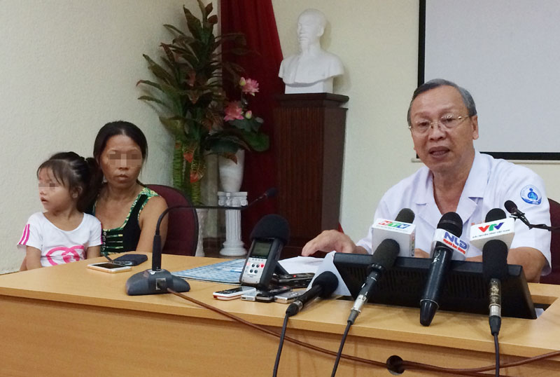 Bệnh nhi là Phạm Thị Mai Lan, 4 tuổi, cư trú tại Đồng Tháp. Cách đây 4 tháng, bé đi ăn giỗ cùng mẹ. Trong lúc mọi người không để ý, bé Lan lấy chai nước tro tàu uống vì tưởng nhầm là nước suối.
