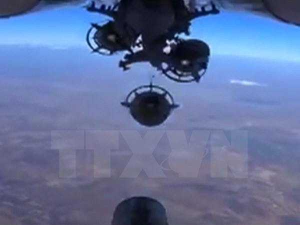 Máy bay chiến đấu của Nga ném bom vào mục tiêu của IS tại Syria. (Nguồn: AFP/TTXVN)