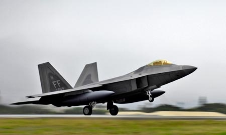 Một chiến đấu cơ F-22 Raptor của Mỹ cất cánh tại căn cứ quân sự ở Hawaii.
