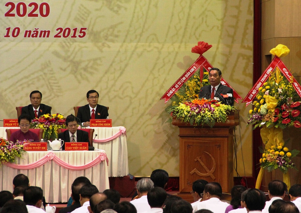 Ủy viên Bộ Chính trị, Thường trực Ban Bí thư Lê Hồng Anh phát biểu tại Hội nghị Đảng bộ tỉnh Kiên Giang, khóa X, nhiệm kỳ 2015 - 2020.