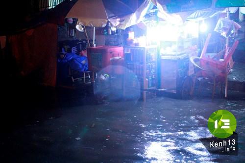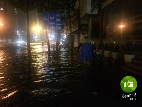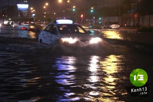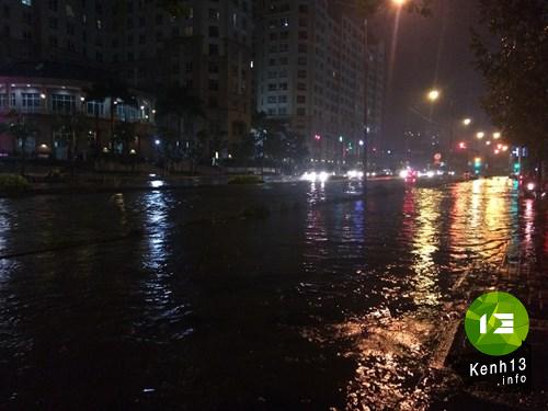 Tại đường Nguyễn Hữu Cảnh (quận Bình Thạnh) tình trạng ngập kéo dài suốt con đường. Mực nước tại đây có chỗ lên đến đầu gối. Tuy đã gần nửa đêm, phương tiện ít di chuyển nhưng khi người dân đi đến đây gặp rất nhiều khó khăn.