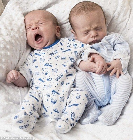Bức ảnh được chụp chỉ 24 tiếng sau khi hai cậu bé được sinh ra. Mẹ hai bé là cô Francesca Tackas và bố là anh Aaron Marriott, 32 tuổi, tài xế xe tải.