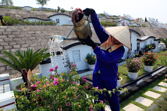 Tại đây có hàng trăm người phụ nữ, hằng ngày làm công việc chăm sóc những phần mộ của những người đã khuất .