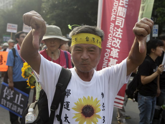 Ngày 7-11 tại Đài Bắc, người dân Đài Loan bày tỏ sự không hài lòng về cuộc gặp ở Singapore - Ảnh: Reuters