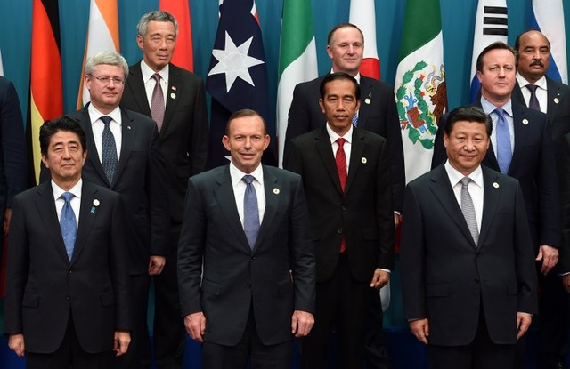 Chủ tịch Trung Quốc Tập Cận Bình có thể "thoát" vấn đề biển Đông tại APEC, nhưng trước đó vẫn còn G-20. (Hình ảnh các nhà lãnh đạo quốc tế tại hội nghị G-20 năm 2014 ở Brisbane, Australia)