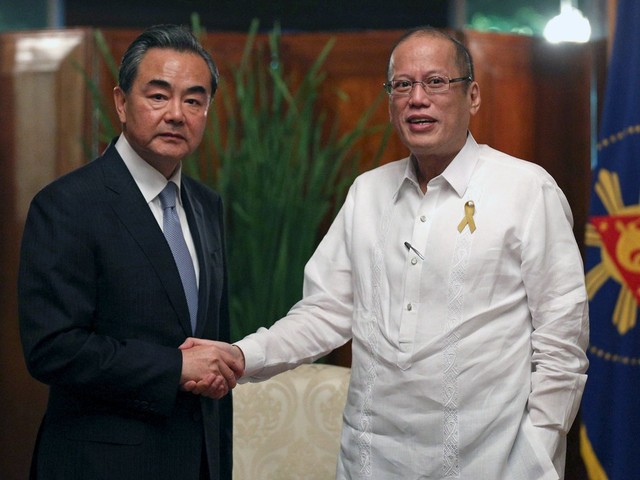 Ngoại trưởng Trung Quốc Vương Nghị (trái) và Tổng thống Philippines Benigno Aquino.