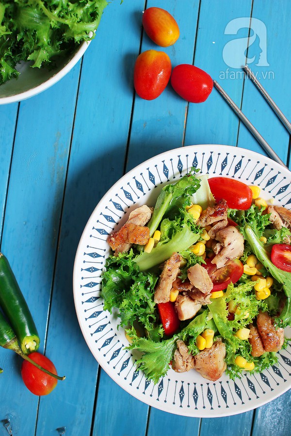 Là “bản hòa tấu” nhẹ nhàng giữa rau củ xanh mướt, giòn rụm, cà chua sắc đỏ xinh xắn và thịt gà mềm ngọt, thơm ngon, salad gà sẽ cung cấp đầy đủ dinh dưỡng cũng như chất xơ, bạn tha hồ ăn mà không lo bị béo. Nguyên liệu cực đơn giản, chế biến cực nhanh nhé.