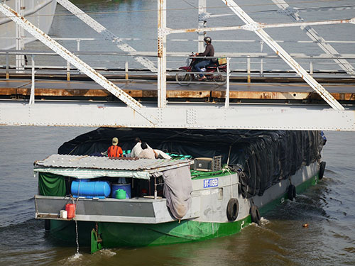 Nhiều cây cầu ở TP HCM có độ tĩnh không thấp, gây khó khăn cho các sà lan