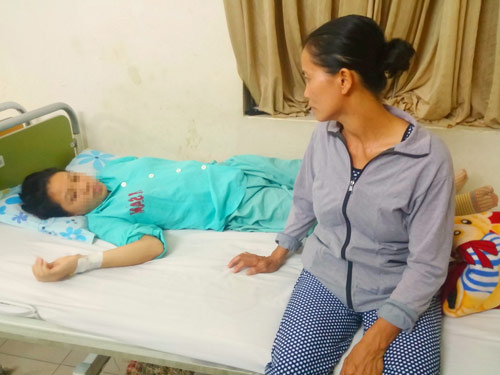 Trong thời gian chị M. mổ trong phòng cấp cứu, cả đêm bà Châu thấp thỏm, lo âu. Vừa canh cánh lo cho tính mạng của con, vừa gánh nỗi lo tiền bạc, bà phải chạy vạy vay họ hàng, làng xóm để đủ tiền viện phí chữa trị cho con gái.