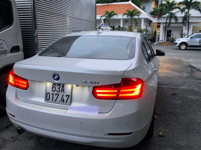 Chiếc xe BMW được đưa về trụ sở công an để làm rõ