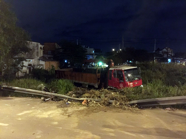 Do hoảng loạn, phụ xe Tạ Phú Vinh (SN 1987, quê Sóc Trăng) bật cửa nhảy khỏi xe và dùng thanh gỗ để chèn bánh, nhưng chiếc xe vẫn không dừng lại được và tiếp tục lao về phía Tỉnh lộ 43.