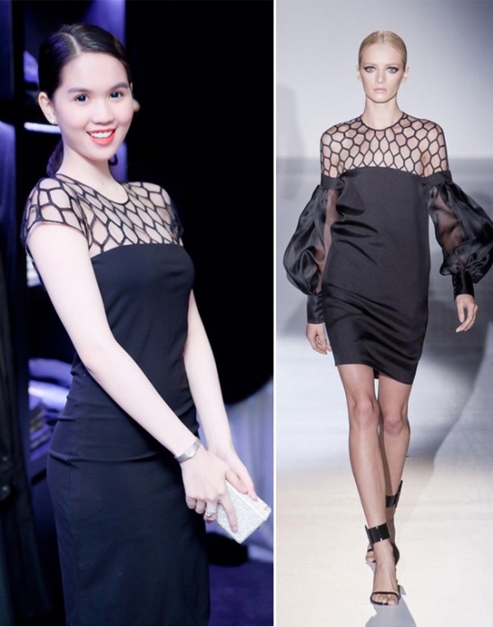 Chiếc váy đen huyền bí này là một trong những bộ cánh 0 điểm của người đẹp. Đường chiết eo vụng về khiến Ngọc Trinh kém duyên trước ống kính.