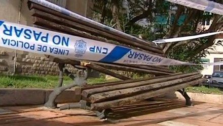 Chiếc ghế mà cụ ông ngồi và bị người phụ nữ tự tử lao trúng bị hư hỏng nặng. Ảnh: Antena3.