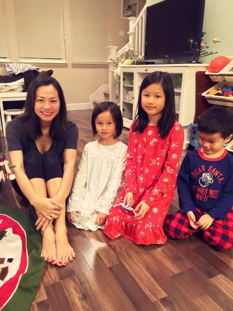 Các con của Ngọc Thúy chơi đùa vui vẻ quanh cây thông Noel trong khi chồng cô lại tranh thủ "tác nghiệp".