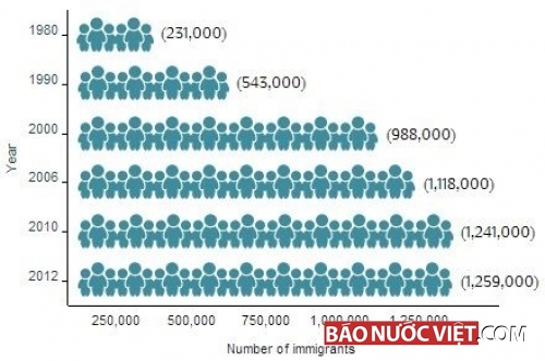 Viện Chính Sách Di Trú ước lượng dân số gốc Á Ðông tại Hoa Kỳ là trên 18 triệu người, gần 18 lần cao hơn con số 1.5 triệu người vào năm 1970. Trong vòng 4 thập niên qua, cộng đồng người Việt Nam đã lớn mạnh lên thành nhóm nhập cư đông thứ tư tại Hoa Kỳ, sau các cộng đồng Ấn Ðộ, Philippines và Trung Quốc. Hiện nay, hầu hết người nhập cư Việt Nam vào Hoa Kỳ có thẻ xanh qua các ngả đoàn tụ gia đình hoặc làm việc.