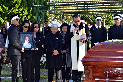 Đúng 11 giờ 30, quan tài được đặt vào kim tĩnh và nhân viên nhà quàn đặt quan tài vào lòng đất. Hàng trăm bông hoa được bỏ xuống huyệt mộ thay cho những lời chào vĩnh biệt, và từ nay, trong căn nhà nhỏ thuộc giáo xứ Saint Barbara, ba mẹ con bà Vân nay chỉ còn hai người ôm nỗi buồn chưa biết đến bao giờ mới nguôi ngoai!