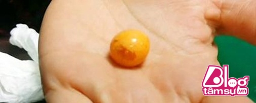 Ông Trần kể lại: “Khi tôi quay ra thì miệng bà ấy toàn máu là máu”. Hóa ra trong lúc đang ăn ốc bà vợ ông Trần không để ý đã nhai phải một viên trân châu của loài ốc Giác hay còn gọi là ốc Hoàng Đế. Viên trân châu có đường kính 0.8 mm, trọng lượng đạt 3 gram. Nó là viên trân châu tự nhiên của loài ốc Giác vốn rất ít khi có ngọc, khoảng 40000 còn mới sinh ra một viên ngọc. Giá của viên ngọc này rơi vào khoảng 18 triệu – 35 triệu.