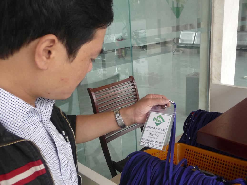 Muốn vào showroom khách phải đeo những tấm thẻ có chữ Trung Quốc này (ảnh Đình Thiên)