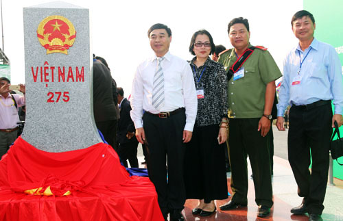 Đến nay, hai nước đã hoàn thành việc xác định, xây dựng tất cả các cột mốc đại có gắn Quốc huy tại 10/10 cặp cửa khẩu quốc tế. Ảnh: Cửu Long