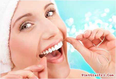 8. Dùng chỉ nha khoa: Hầu hết chúng ta nghĩ rằng chỉ nha khoa chẳng liên quan gì đến việc làm trắng răng nhưng thực ra chúng lại giúp loại bỏ những vết ố và mảng cao bám giữa các răng, giúp răng trông trắng sạch hơn hẳn.