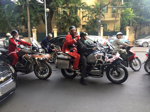 Sự xuất hiện của ông già Noel mặc đồ đỏ, đeo râu dài trắng muốt, xách túi quà cồng kềnh trên khắp các tuyến phố trong dịp lễ Giáng sinh không còn là điều lạ. Tuy nhiên, mỗi năm, các “ông già Noel bằng xương bằng thịt” lại có sự phá cách trong việc trang bị “tuần lộc” đi phát quà. Có ông đi bằng xe đạp, có ông đi bằng xe máy, cũng có ông đi hẳn xe phân khối lớn… đúng chất “ông già Noel” thời hiện đại.