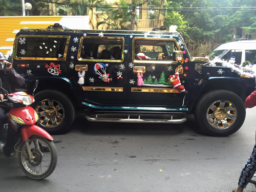 Hôm 24/12, sự xuất hiện của ông già Noel trên chiếc mui trần hạng sang trên phố Chu Văn An cũng khiến dân tình xôn xao. Trên hai chiếc xe BMW trị giá khoảng 2 tỷ đồng, ông già Noel mặc đồ đỏ cùng một “bà già Noel” mặc bộ đồ xanh ngồi nhún nhảy thu hút sự chú ý của rất nhiều người qua đường. Độ sành điệu và chịu chơi của những ông, bà già Noel thời hiện đại này giúp lễ Giáng sinh thêm phần độc đáo, thú vị.