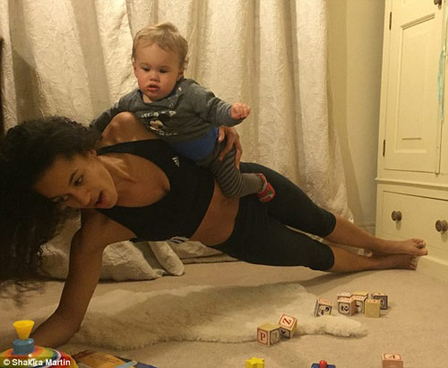 Shakira Akabusi, 28 tuổi, từng khiến nhiều mẹ bỉm sữa ngưỡng mộ vì thành tích lấy lại vóc dáng săn chắc, gọn gàng chỉ sau sinh 8 tuần. Mới đây, cô lại tiếp tục chia sẻ với chị em về cách duy trì vóc dáng của mình sau sinh với những bài tập cùng cậu con trai 1 tuổi. Shakira cũng khuyên các mẹ bầu không nên dựa vào việc mình bầu bí để ăn uống quá thoải mái. Ngoài ra, các mẹ cũng cần chú ý ăn uống có kiểm soát trong các dịp lễ Tết cuối năm để không bị tăng cân quá nhiều.