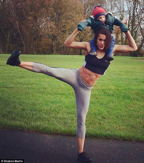 Tập luyện thường xuyên giúp Shakira Akabusi nhanh chóng lấy lại vóc dáng sau sinh 8 tuần.