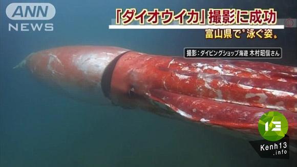Loài mực khổng lồ quý hiếm có tên gọi khoa học là Architeuthis chưa từng được bắt gặp ở vùng biển Nhật Bản đột ngột xuất hiện vào đêm Giáng sinh. Con mực màu trắng cam với chiều dài 4 mét, rộng 1 mét được phát hiện khi đang bơi dọc theo một chiếc thuyền trên vịnh Toyama, bờ biển phía Tây Nhật Bản.