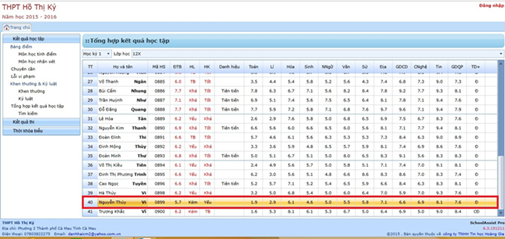 Học kì 1 đã kết thúc, trường THPT Hồ Thị Kỷ, Cà Mau đã công bố bảng điểm tổng kết của học sinh sau một học kì đầy nỗ lực. Ngạc nhiên và thậm chí gây sốc là bảng điểm của Thúy Vi, cô nàng scandal.