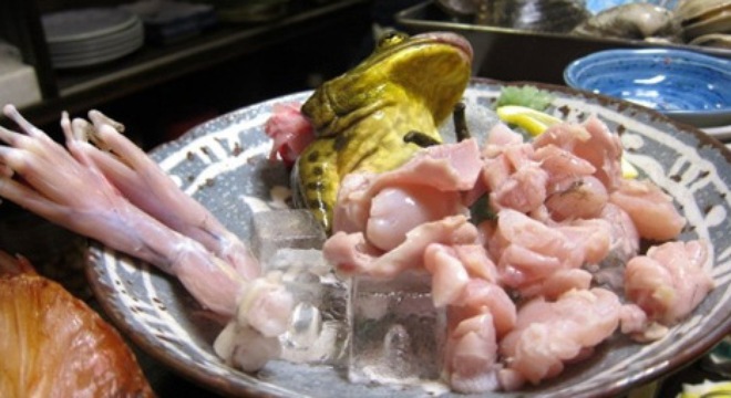 Món này tương đối nổi tiếng ở Nhật Bản. Người Nhật lại thản nhiên thưởng thức món sashimi ếch rất ngon lành, thích thú. Con ếch sau khi mua về đem rửa sạch sẽ, lột da (nhưng đầu giữ nguyên), bỏ nội tạng.