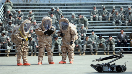 Dù thế giới đang tập trung chú ý vào chương trình tên lửa đạn đạo và vũ khí hạt nhân của Triều Tiên, trung sĩ Greg Moxcey thuộc Tiểu đoàn Hóa học số 23 cho rằng hiểm họa lớn nhất đến từ vũ khí sinh hóa. Lý do là trong khi các chuyên gia khẳng định Triều Tiên chưa đạt được công nghệ để triển khai đầu đạn và bom hạt nhân, nước này đã làm chủ vũ khí hóa học từ lâu và “không ai nắm được số lượng của chúng lẫn các mục tiêu tấn công của Bình Nhưỡng”, ông Moxcey nói.