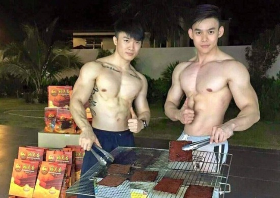 Mới đấy, hình ảnh về hai anh chàng khoe cơ bắp cuồn cuộn nướng thịt khô đang khiến dân mạng thế giới xôn xao. Lúc này tại Trung Quốc đang là những ngày lạnh giá nhất mùa đông thì 2 chàng trai gốc Hoa từ Malaysia "hâm nóng" bầu không khí chào mừng năm mới bằng cách bán nude nóng bỏng phục vụ món thịt khô "Bak Kwa". Nhờ thể hình và cả sự hấp dẫn của món ăn nên 2 anh chàng đang có công việc làm ăn rất thuận lợi.