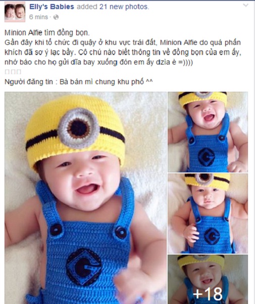 Mới đây, trên fanpage cá nhân của mình, Elly Trần đăng tải con trai Alfie Túc Mạch hóa thân thành chú Minion cực đáng yêu khiến người yêu phát cuồng. Kèm theo những bức hình đó là chú thích ngộ nghĩnh về việc chú minion Alfie đã “lạc bầy” trong chuyến du hành tới trái đất nên bây giờ phải tìm đồng bọn để trở về với hành tinh của mình.