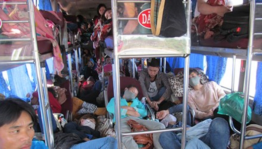 Dù mua được vé rồi thì bạn cũng chưa thoát được cảnh khổ. Những chuyến xe ngày Tết luôn là một trong những dịp để nhà xe nhồi nhét khách.Thậm chí có người bị ép xuống hầm xe, nằm trên nóc xe và phủ tấm bạt lại để qua mặt cơ quan chức năng. Lái phụ, lái chính thi nhau hò hét, phanh gấp để bắt khách. Đi trên những chiếc xe đó, người khỏe cũng phải say xe, người yếu thì như “sống dở, chết dở”.