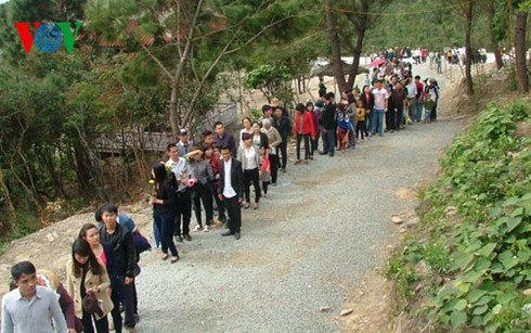 Mỗi ngày có từ 10.000 đến 15.000 lượt người từ khắp mọi miền đất nước đến dâng hương hoa tưởng nhớ Đại tướng Võ Nguyên Giáp. Tết năm nay, trời Quảng Bình nắng ấm nên rất thuận lợi cho người dân khi vượt qua quãng đường dài đến với Vũng Chùa- nơi Đại tướng Võ Nguyên Giáp yên nghỉ.