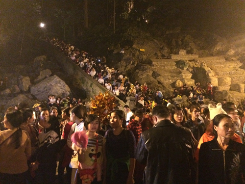 Rất đông người dân đã có mặt tại Chùa Thiên Trù, Động Hương Tích từ 2-3h sáng để thành tâm lễ Phật như thế này.
