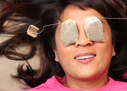 Chất EGCG trong trà đã quá nổi tiếng về khả năng chống lão hóa rồi hen. Đắp túi trà lên mắt vài phút mỗi ngày không chỉ giúp vết chân chim mờ đi mà vùng quầng thâm còn giảm đi đáng kể nữa đó.