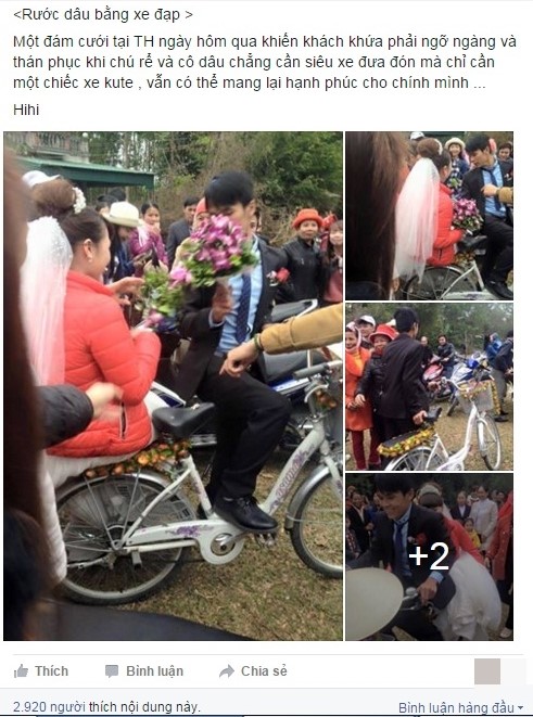 Mới đây, một diễn đàn dành cho giới trẻ đăng tải loạt ảnh về màn rước dâu bằng xe đạp tại Thanh Hóa.