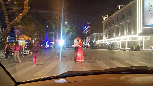 Mới đây, một bức ảnh ghi lại cảnh cô dâu chú rể tạo dáng tại vạch dừng đèn đỏ ngã tư Hàng Bài - Hàng Khay, Hoàn Kiếm, HN đã gây nên cơn sốt trên mạng xã hội.