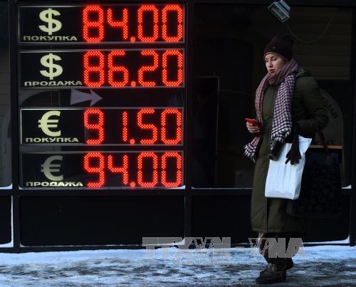 Bảng tỷ giá đồng ruble được niêm yết tại thủ đô Moskva ngày 21/1. Ảnh: AFP/TTXVN