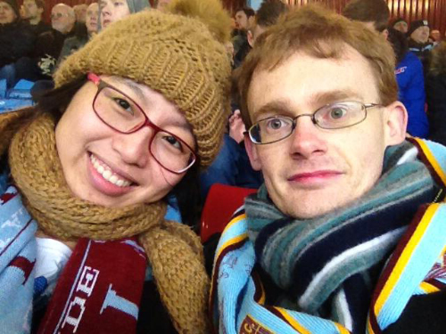 Mặc dù có nhiều bạn châu Á, anh chưa gặp người Việt Nam nào trước khi gặp tôi. Anh chưa từng thử qua đồ ăn Việt và cũng không biết một từ tiếng Việt nào. Sau khi chúng tôi quen nhau, tôi dạy anh một chút tiếng mình, đặc biệt là những câu nịnh vợ như là "Vợ ơi, anh yêu em nhiều lắm. Em rất xinh đẹp".