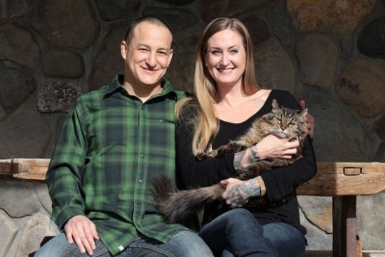 Hai vợ chồng trẻ vô cùng hạnh phúc khi có chú mèo ở bên cạnh.