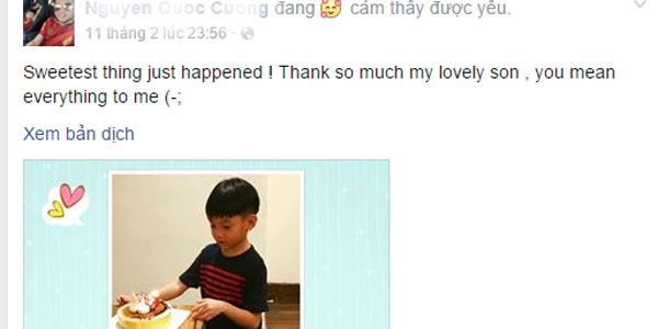 Trên trang cá nhân, Cường Đôla thể hiện tình yêu thương vô bờ cho con trai.