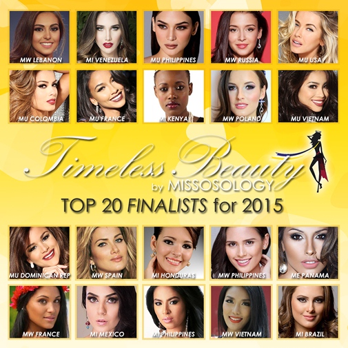 Mới đây, website nổi tiếng về sắc đẹp Missosology đã công bố bảng xếp hạng Top 20 gương mặt sở hữu vẻ đẹp vĩnh cửu của năm 2015 do nhiều người đẹp cũng như các chuyên gia chọn lựa. Danh sách 20 người này được chọn ra từ 66 ứng cử viên và 20 cái tên này sẽ tiếp tục lọt vào một vòng bình chọn tiếp theo với những vị giám khảo hoàn toàn mới. Đặc biệt đáng chú ý, 2 mỹ nhân đình đám của Việt thời gian qua là Phạm Hương và Lan Khuê cũng vinh dự được góp mặt. Đứng đầu Top 20 là Hoa hậu Thế giới Lebanon – Valerie Abou Chacra với tổng cộng 4.727 điểm. Hoa hậu Hoàn vũ Thế giới 2015, Pia Wurtzbach chỉ đứng thứ 3, xếp sau người đứng thứ hai là Hoa hậu Quốc tế Venezuela – Edymar Martínez .