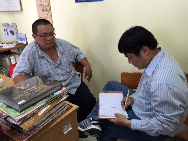 Ông Phước Kiên (trái) đang chia sẻ cùng phóng viên iHay.vn