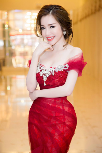 Cô xuất hiện với thiết kế ôm sát có gam màu đỏ nổi bật tôn nên những đường cong gợi cảm.