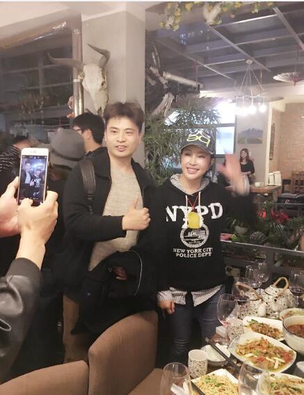 Những người trong đoàn đi cùng Triệu Vy "tranh nhau" chụp hình kỷ niệm với người đàn bà không tuổi của làng giải trí Hoa ngữ.